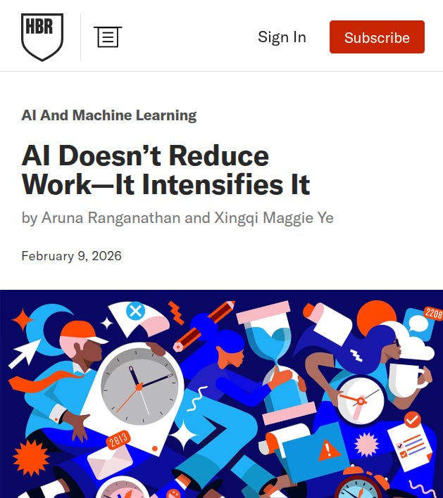 A 8-month field study at a US tech company with about 200 employees found that AI use did not shrink work, it intensified it, and made employees busier.